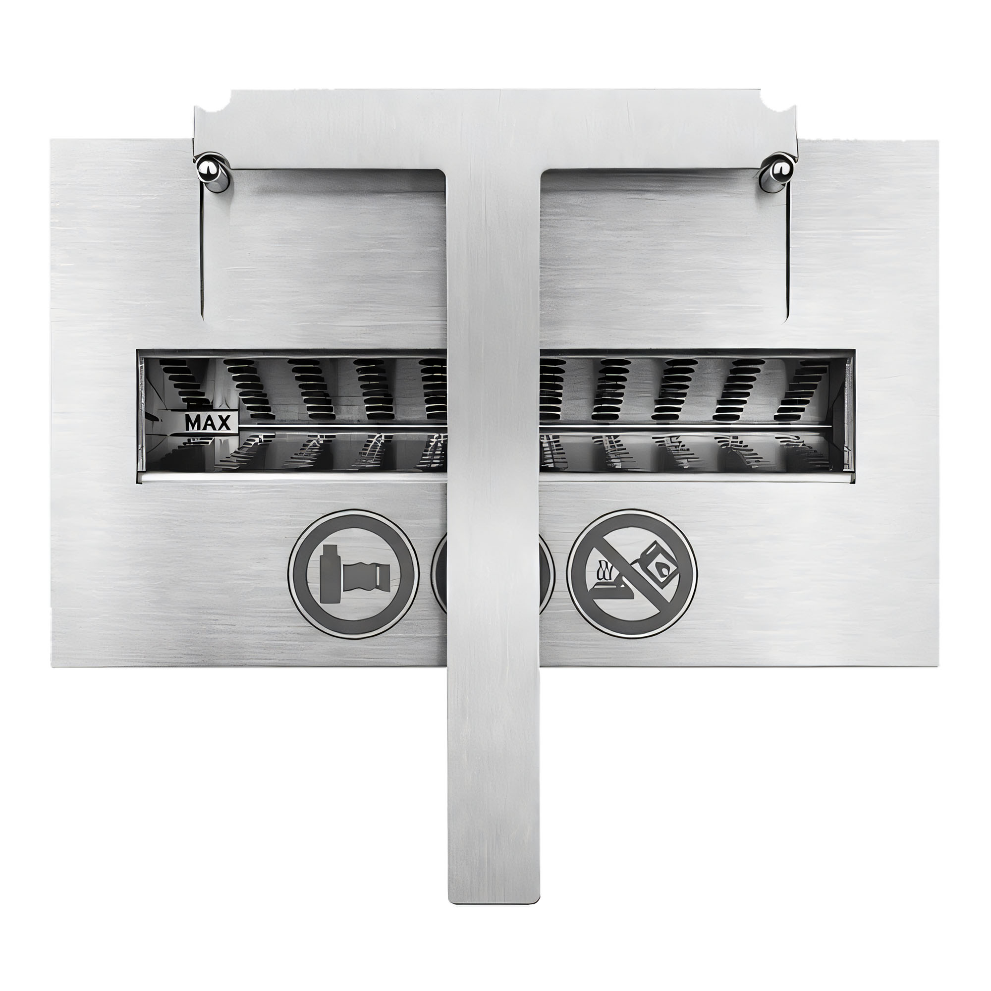 Produkt wyposażony jest we wskaźnik maksymalnego poziomu paliwa oraz uchwyt do wygaszania płomienia, co zwiększa komfort i bezpieczeństwo użytkowania.