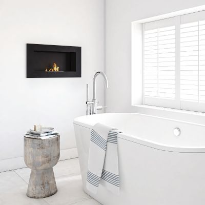 Montować można go bezpośrednio na ścianie lub w zabudowie wnękowej, co daje elastyczność aranżacji wnętrz. Gładkie, matowe wykończenie z jednolitą strukturą ułatwia utrzymanie w czystości, a miejsce wokół paleniska można wykorzystać do dekoracji (kamienie, kryształki, drewienka ceramiczne).